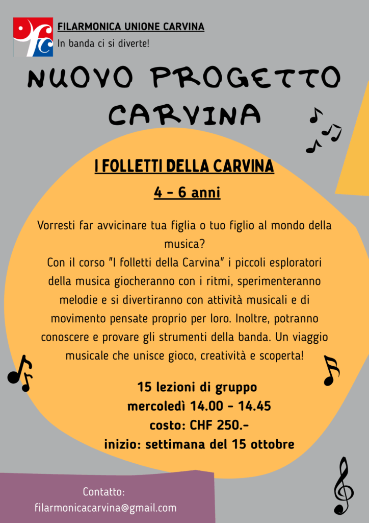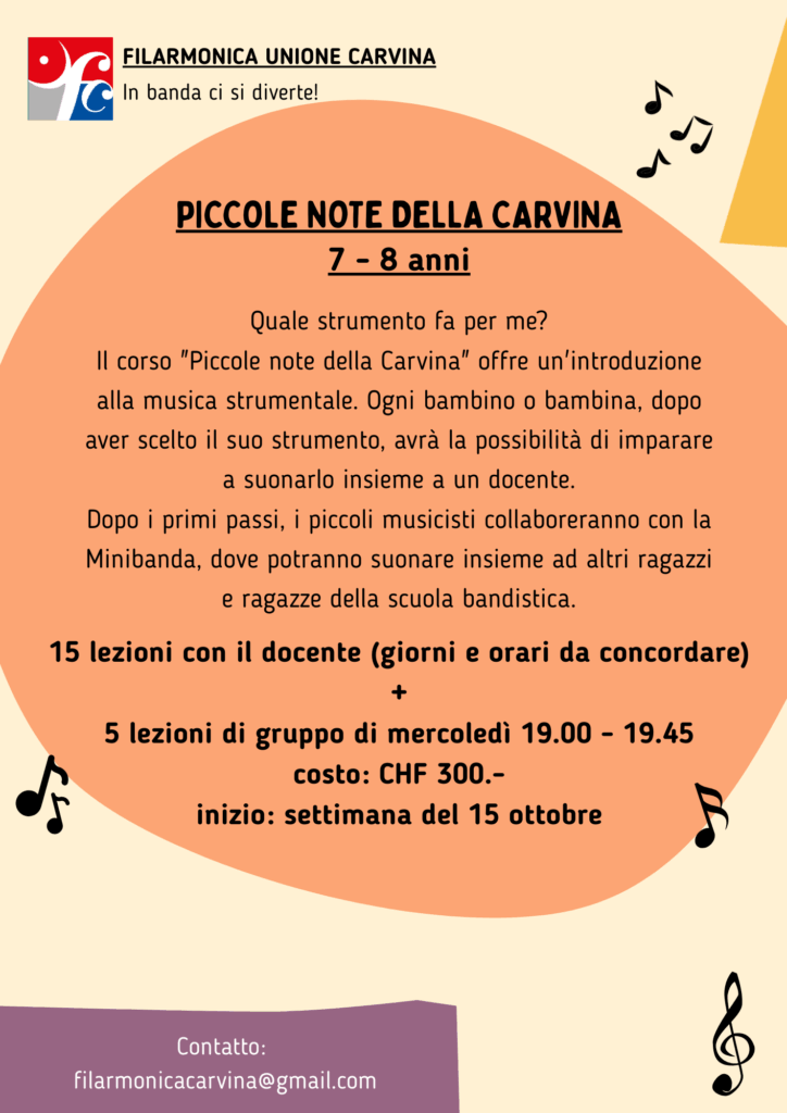Ciao!👋 Sei interessato ad iscriverti alla scuola musica della Filarmonica Unione Carvina? Contattaci subito!